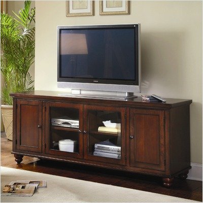 ICB-1663-BLK Finish: Black Pictured in Cherry Clean lines, turned bun feet and bronzed hardware define this stylish collection. Flexibility and charm are at the heart of this energetic look that can go sporty or country chic Features: -TV stand. -Kingston collection. -Available in Distressed Cherry or Black finishes. -Hardware finish: Dark bronze. -Wood construction. -Turned bun feet. -Adjustable shelves. -Open area for components. -Manufacturer provides ten year limited warranty.