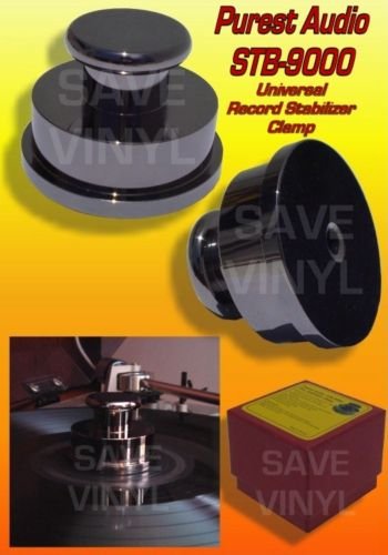 This solid brass, chromed finish Record Stabilizer is the perfect way to improve your record's sound by dampening your LP for increased resolution. It's unthreaded insert design lets you use on any turntable with a spindle that is up to 1" high above the record. It will achieve better contact between the record and the platter mat, whether it be felt or rubber. Resonances of vinyl records will be well absorbed and the trackability of less than perfectly flat records is greatly improved. Will also tighten bass and provide better instrument focus. Its low profile and compact design will not affect automatic tonearm return and will allow for most turntables to play while cover is closed. This will be one of those tweaks that will definitely make a difference.
